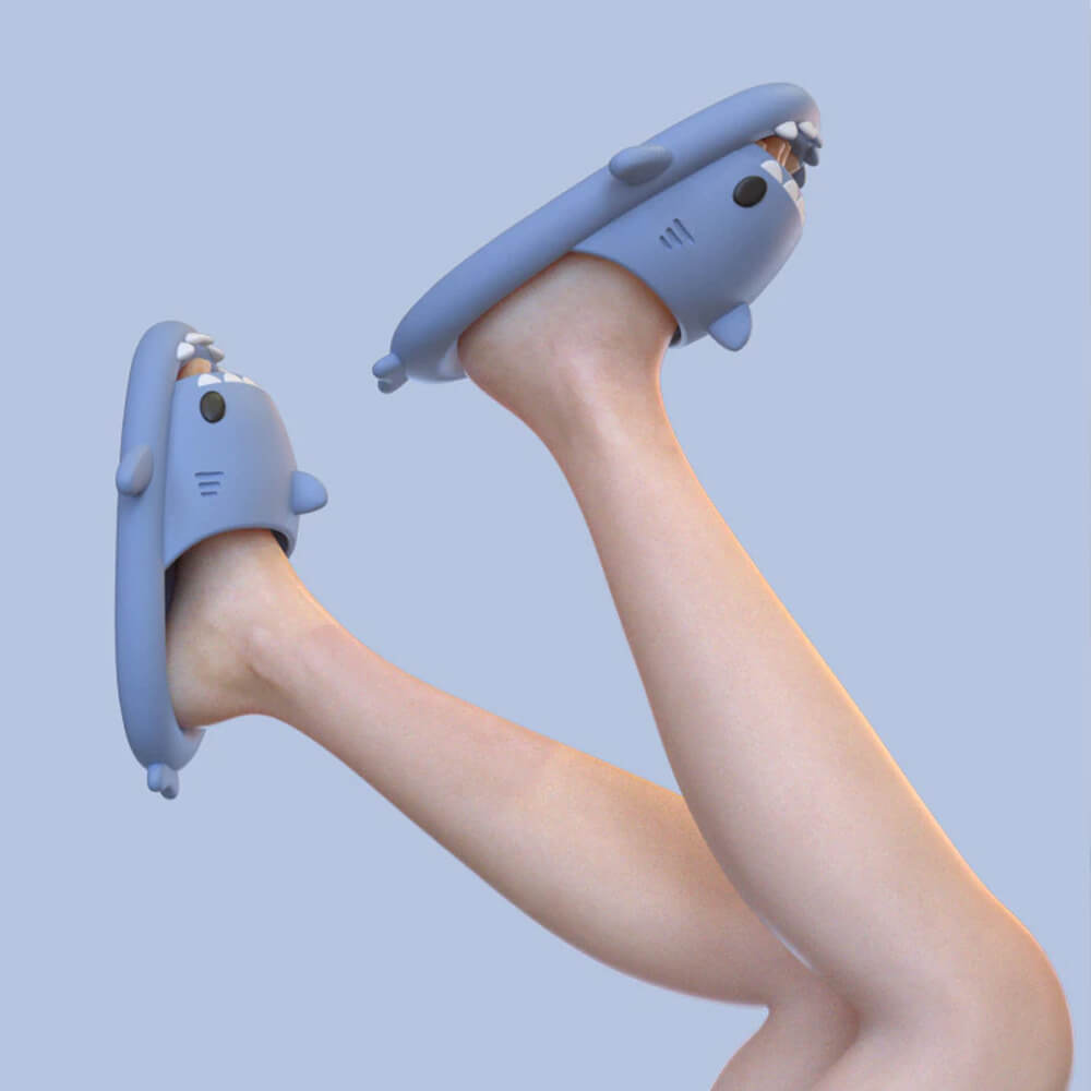 هذه الصنادل على شكل سمكة القرش أصلية للغاية! أعشق التصميم الذي يخرج عن المألوف. إنها مريحة للغاية ومثالية لتكون أنيقة، حتى في المنزل!